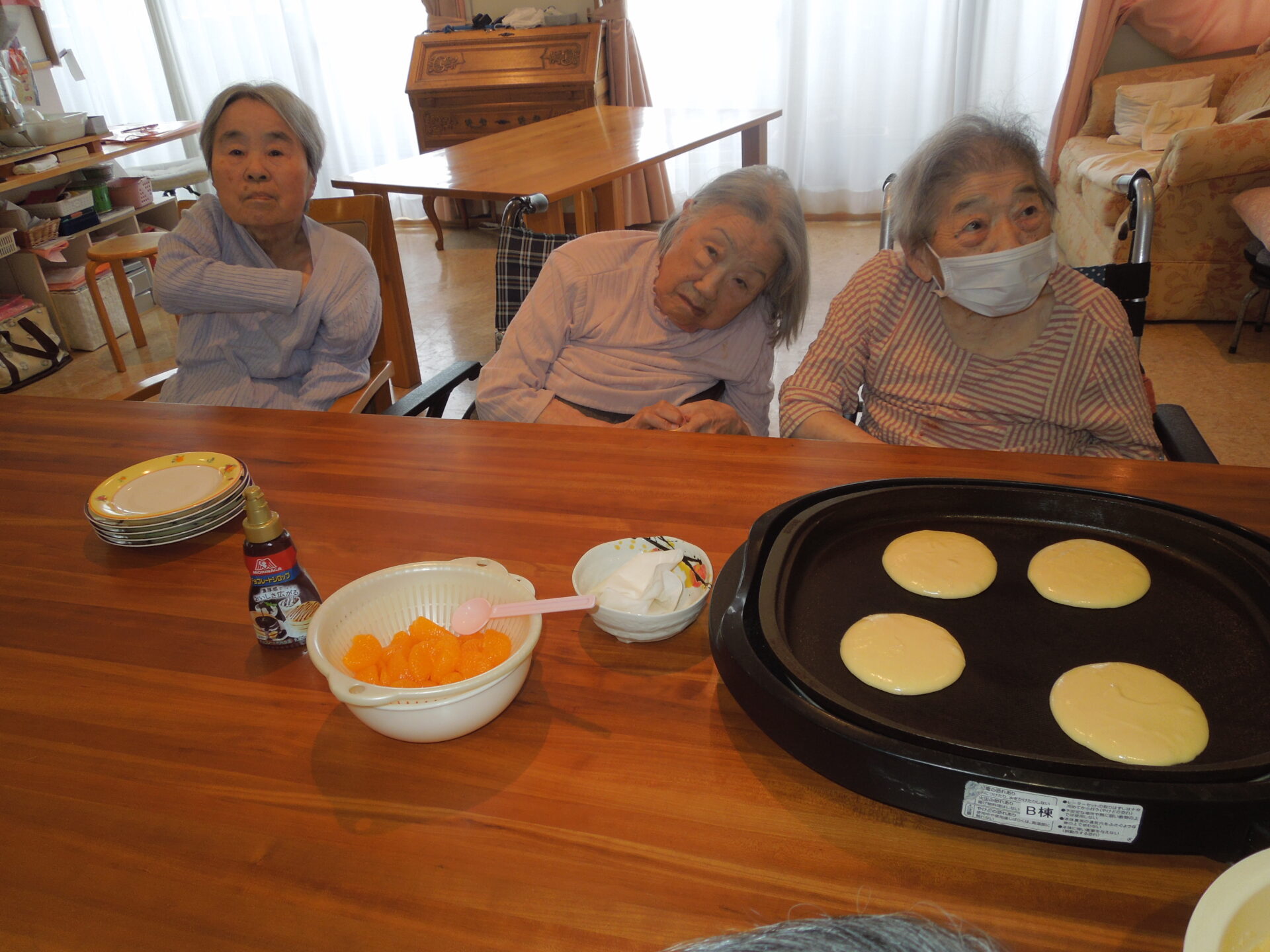 パンケーキ作りに挑戦(*^^)v 「上手に焼けるかな(^^)/」「楽しみじゃな~😋」とワクワク♡