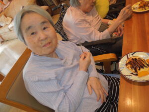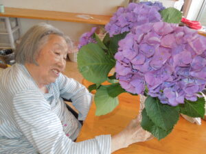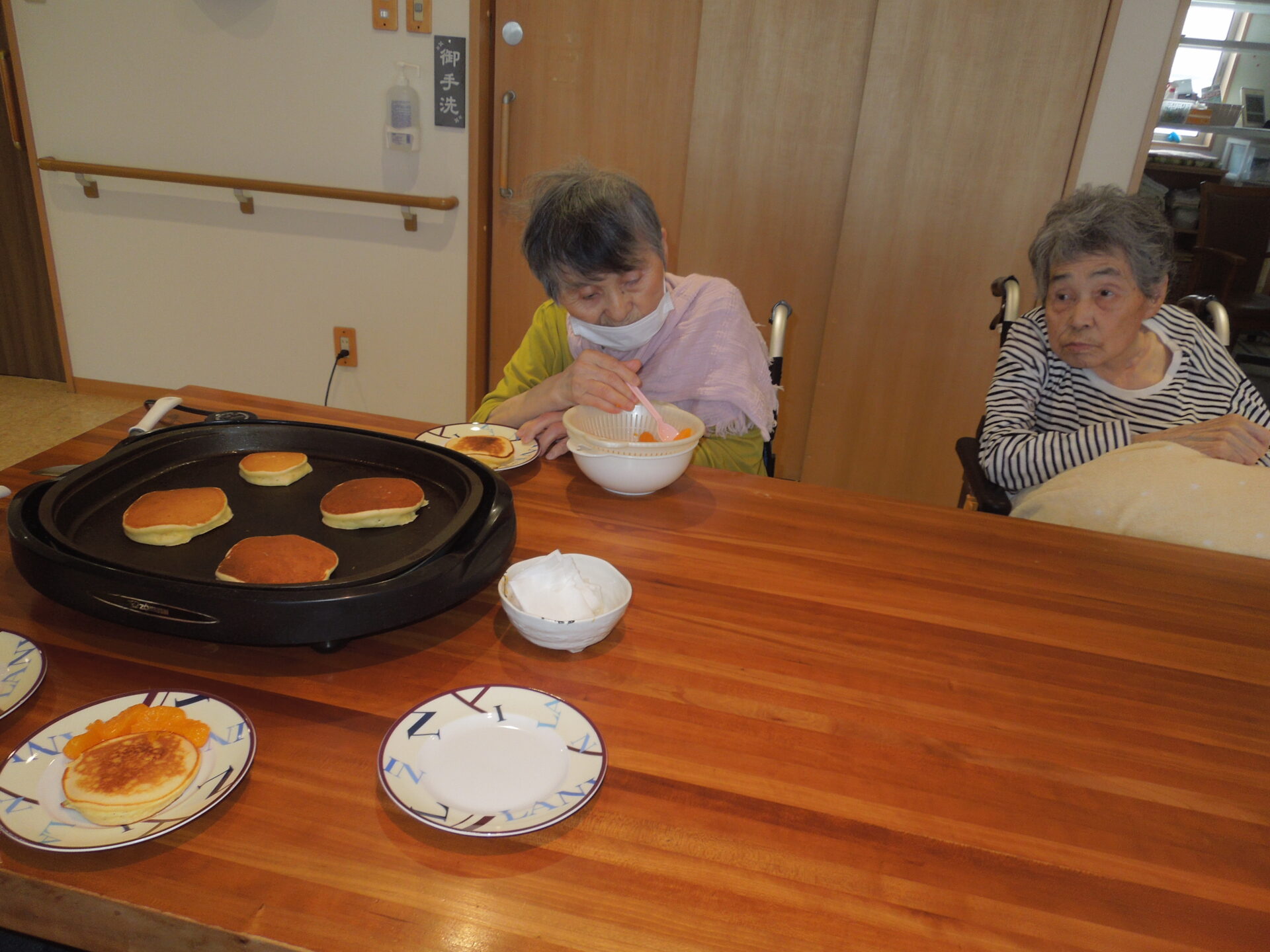 今年の梅雨は、“短期集中型”。中旬以降は連日の“猛暑日”。戸外に出るのは危険なため、皆様には室内でパンケーキ作りをお手伝いしていただいたり、紫陽花で季節を感じていただいたり、ご自分のお好きなことをしたり、日々穏やかにお過ごしになられました。