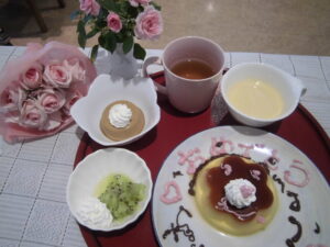 プレゼントとメッセージカードを準備し、皆でハッピーバースデーの歌を歌ったり、大好きなプリンをデコレーションしてご提供して、お祝いの会を催しました。