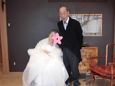 I様はタキシード、奥様はウエディングドレスをお召しになられ、皆様から拍手をいただき、少し照れていたご様子でした。