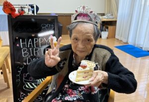 居室に集まり、職員とご入居者さんでハッピーバースデーを歌って、あたたかい雰囲気の中でお誕生日会がスタートしました!