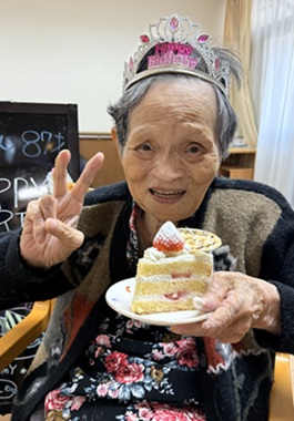 居室に集まり、職員とご入居者さんでハッピーバースデーを歌って、あたたかい雰囲気の中でお誕生日会がスタートしました!