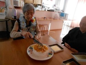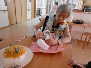 お誕生日ケーキの飾り付けもT様が頑張って、マンゴーたっぷりのケーキが出来上がりました。