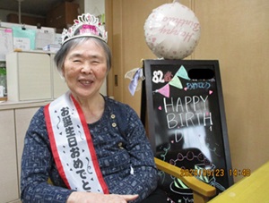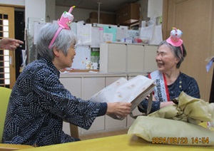 娘さん、スタッフからの心のこもったプレゼントを「ありがとう」と笑顔で受け取り
