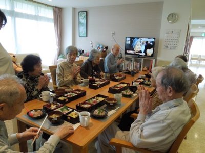 グループホーム心の瞳(め) 9/17 昨年はホテルにお出掛けしたので、今年はホームにてお祝いの会を開きました。 綺麗な箱型のお弁当箱に天ぷら、お刺身等が綺麗に盛り付けられみなさん残さず食べられました。 紅白まんじゅうは箱入りであんこたっぷりで大変喜ばれ、一日楽しく過ごせました(^^) 88歳・米寿が...