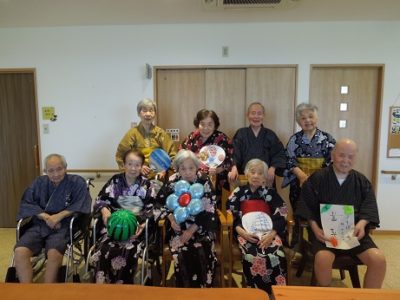 グループホーム心の瞳(め) 8/25 A棟 猛暑と豪雨の続いたこの夏。 涼を感じる時もないままに過ごしましたが、残暑のこの日、浴衣と甚平に袖を通して頂きました。 はにかむような笑顔が多く見られる中、記念撮影の“ハイ!チーズ♪” B棟 皆さん、最初は気持ちが乗らなかったのですが...昼の家リュックサック