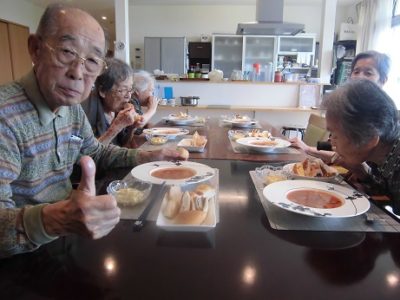 グループホーム心の瞳(め) 8/28 入居後初のお誕生日を迎えたI様を皆様と一緒にお祝いしました。 「この歳まで生きて来られました。これからも元気に過ごしていけたら・・・と思います。」と挨拶されたI様。 パン好きなI様のために数々のお惣菜パンやあんパンをご用意しました。 「いっぺんにこんなに食べれて...